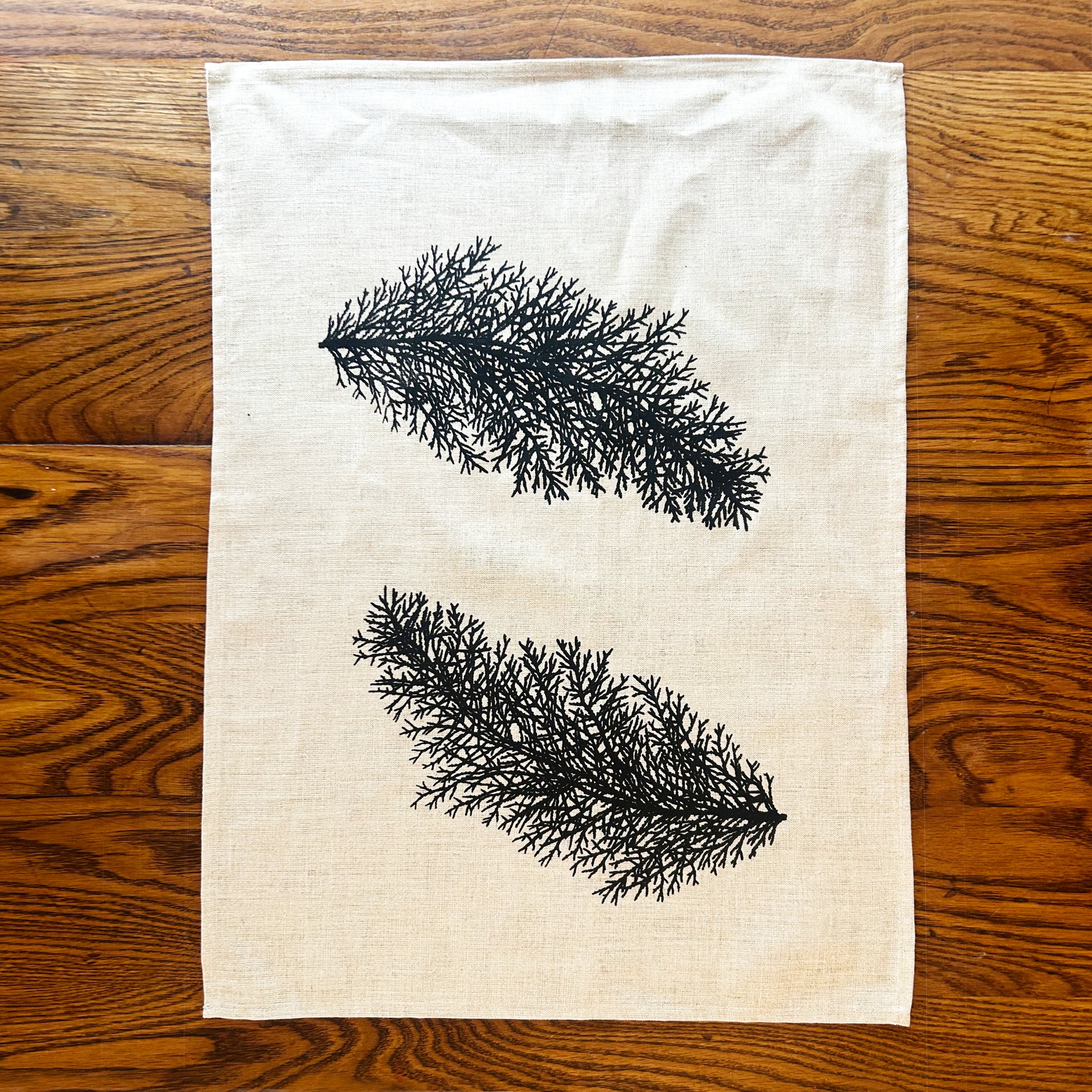 This 100% linen tea towel features the dangling branches of Tasmania’s Huon pine, created from my original drawing, of the pine, which has been hand printed onto the tea towel.